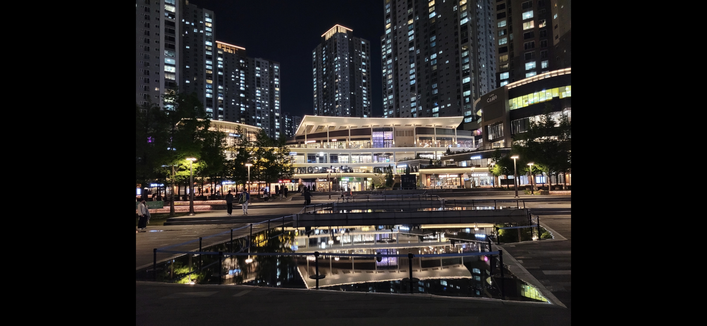 밤에도 동탄호수공원은 활기 넘치는 분위기였습니다. 가족, 연인, 친구들과 함께 산책을 즐기는 사람들이 많았습니다. 호수 주변에는 분위기 좋은 카페와 레스토랑이 많아 야경을 감상하며 식사를 즐기기에도 좋습니다. 특히, 호수 바로 앞에 위치한 라크몽은 밤에도 화려한 조명으로 빛나고 있어 눈길을 사로잡았습니다. 라크몽 내부에는 다양한 음식점과 카페, 쇼핑 공간이 있어 밤에도 즐길 거리가 풍부했습니다.
