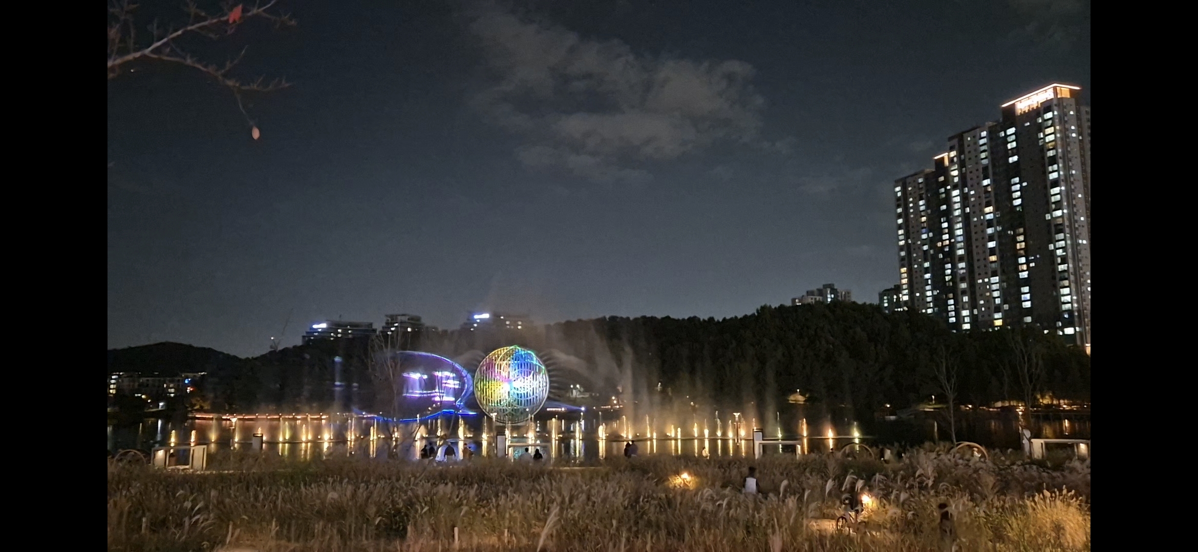어둠이 내려앉은 호수 위로 화려한 조명이 켜지면서 로맨틱한 분위기가 연출되었습니다. 잔잔한 호수에 비친 빛들이 반짝이는 모습은 마치 은하수처럼 아름다웠습니다. 호수 주변을 따라 산책로가 잘 조성되어 있어 밤에도 안전하게 걸을 수 있었습니다. 곳곳에 설치된 벤치에 앉아 야경을 감상하며 잠시나마 여유로운 시간을 보냈습니다. 특히, 호수 한가운데 설치된 루나쇼는 화려한 조명과 음악이 어우러져 환상적인 분위기를 자아냈습니다. 루나쇼는 밤에만 운영되니 시간을 맞춰 방문하는 것을 추천합니다.