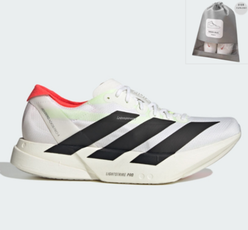 2. 아디다스 아디제로 아디오스 프로 4: 나이키의 아성에 도전하는 아디다스의 역작입니다. '라이트 스트라이크 프로' 폼과 5개의 카본 플레이트가 결합된 '에너지 로드' 기술로, 발의 자연스러운 움직임을 살리면서도 폭발적인 추진력을 제공합니다.